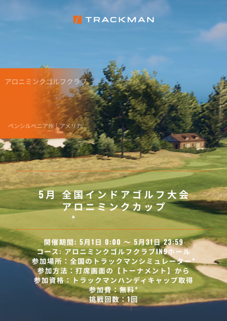 5月の全国インドアゴルフ大会は、5月14日から始まる「第108回全米プロゴルフ選手権」の会場であるアロニミンク・ゴルフクラブのバーチャルコースで開催します!